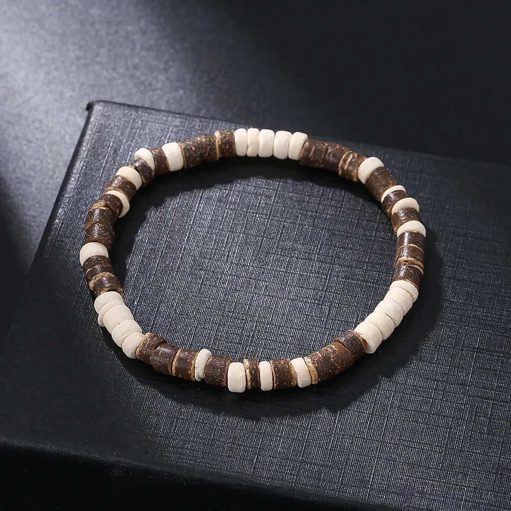 Crafted from durable coconut shell wood chips and stone, this bracelet promises longevity and resistance to wear.