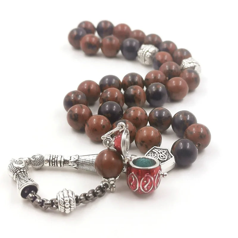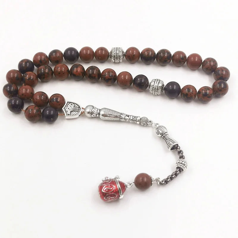 Tasbih Gemstone Natural Obsidian Stone Misbaha 33 Beads Bracelet Muslim Prayer Beads with Accessories inside Turquoise stone